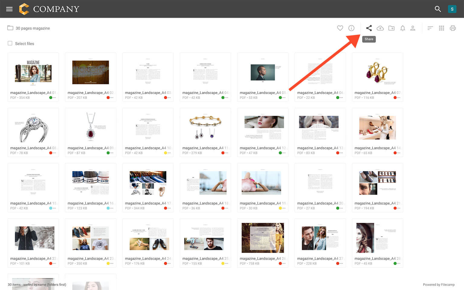 Navigate to the folder that contains the files you want to share, then click the Share  icon.