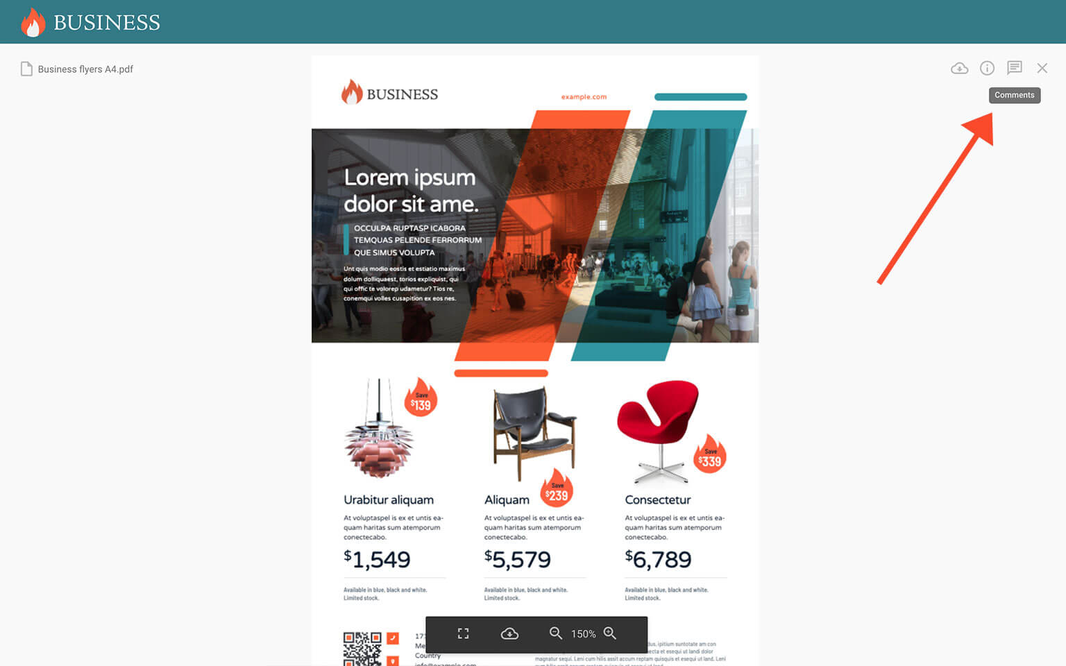 Any recipients of the link can now start adding comments to the file by clicking at the Comments  icon in the Toolbar.